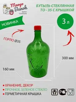Бутылка стеклянная 3 л ТО-35 мм крышкой для вина настойки