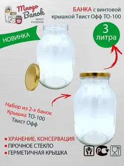 Банка 3 литра с крышкой ТО-100мм для консервация и хранения