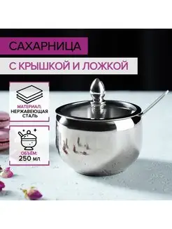 Сахарница из нержавеющей стали с крышкой и ложкой, 250 мл