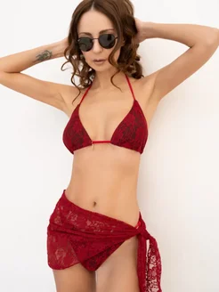 Купальник раздельный 3 в 1 с парео юбкой ажурный женский