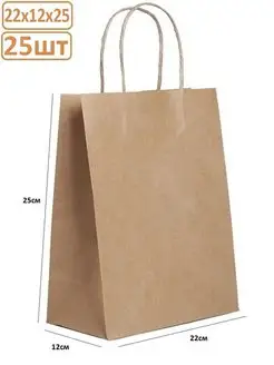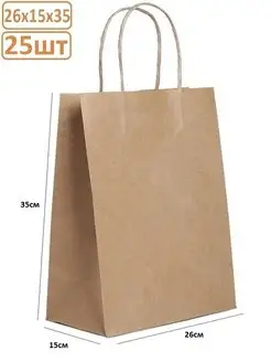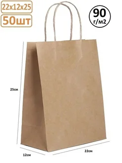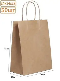 Крафт пакеты бумажные с кручеными ручками 24х14х28, 50шт