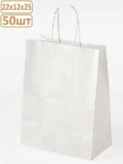 Крафт пакеты бумажные с кручеными руч 24х14х28, 50шт БЕЛЫЙ