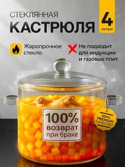 Кастрюля стеклянная термостойкая с крышкой, 4 л