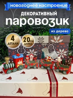 Деревянная Игрушка фигурка паровоз Новогодний для декора