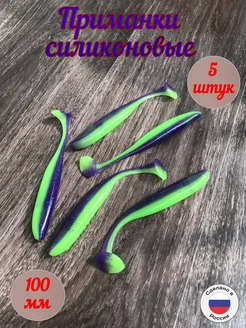 Приманка для рыбалки силиконовая виброхвост 100 мм, 5 шт