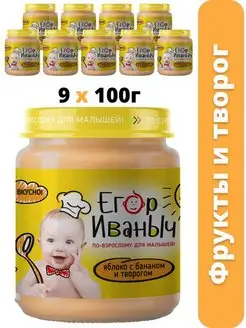 Пюре детское фруктовое Яблоко с бананом и творогом