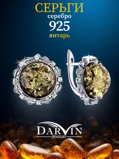 Серьги серебряные с натуральным янтарем винтаж круглые