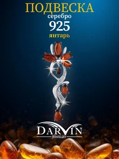 Серебряная подвеска с янтарем на шею, цветок в стиле модерн