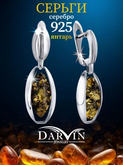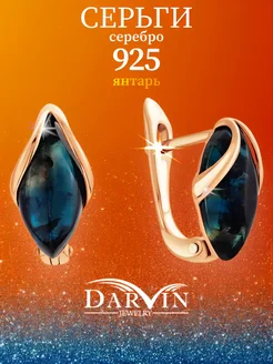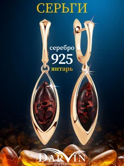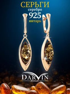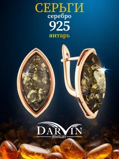 Серьги серебро позолоченные с натуральным янтарем необычные