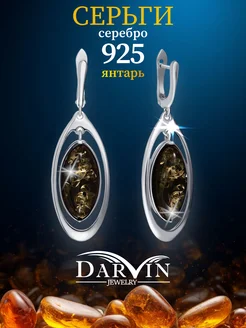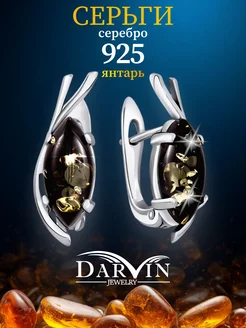 Серьги серебряные с натуральным янтарём в стиле арт-деко