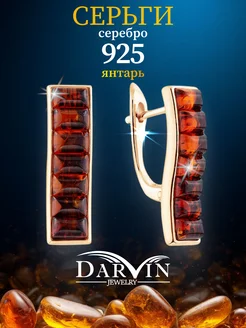 Серебряные серьги позолоченные с янтарем в стиле артдеко