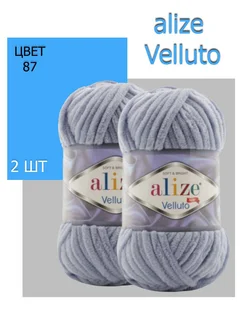 Пряжа плюшевая Ализе Alize Velluto 87 серый 2 мотка