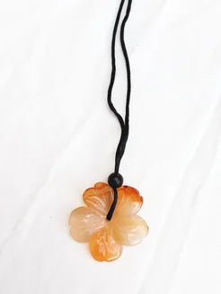 Кулон натуральный камень Агат красный цветок 3 см