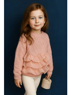 Свитер нарядный с рюшами вязаный теплый