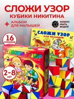 Кубики Никитина Сложи узор + альбом для самых маленьких