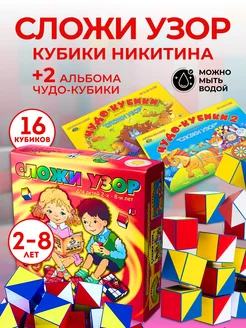 Кубики Никитина Сложи узор + 2 альбома развивающие