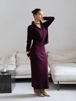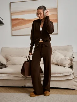 Костюм теплый вязаный с брюками и кардиганом на молнии