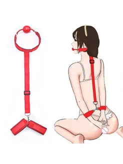 Кляп с наручниками красный регулируемые ремни