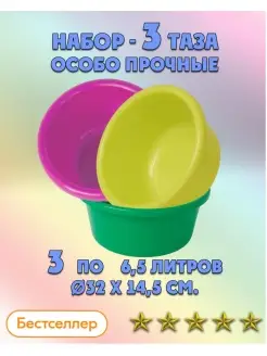 Тазик пластиковый - миска набор 3 шт по 6.5 л разноцветный