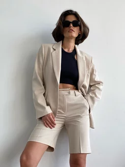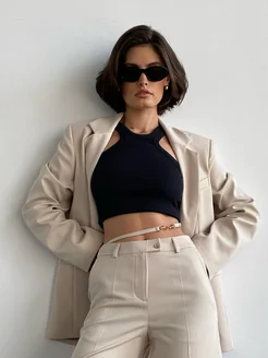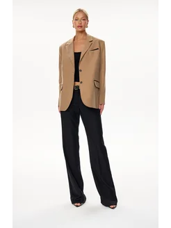 Брюки прямого кроя из эко-кожи в молочном цвете