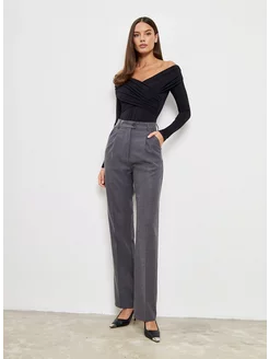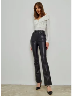 Брюки клеш из эко-кожи на высокой посадке в чёрном цвете