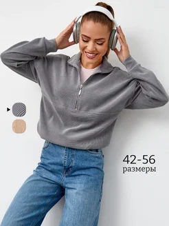 Теплая кофта поло осенняя больших размеров оверсайз свитшот
