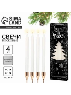 Новогодние белые свечи Верь в чудеса 15х1 см
