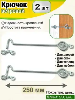 Крючок ветровой на дверь теплицу окно калитку, 250 мм, 2 шт