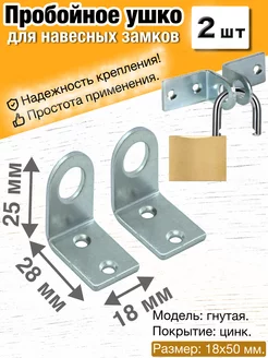 Проушина для навесного замка угловая, петли 18х50 мм, 2 шт