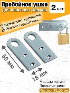 Проушина для навесного замка прямая, петли 18х50 мм, 2 шт
