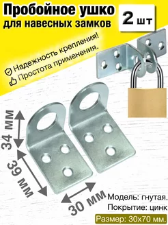 Проушина для навесного замка угловая, петли 30х70 мм, 2 шт