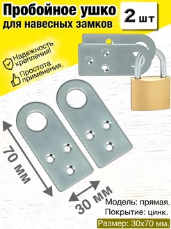 Проушина для навесного замка прямая, петли 30х70 мм, 2 шт