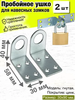 Проушина для навесного замка угловая, петли 30х90 мм, 2 шт
