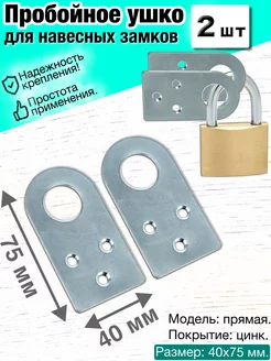 Проушина для навесного замка прямая, петли 40х75 мм, 2 шт