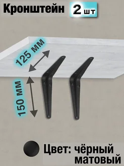 Кронштейн для полки настенный черный уголок 125х150 мм, 2 шт