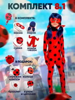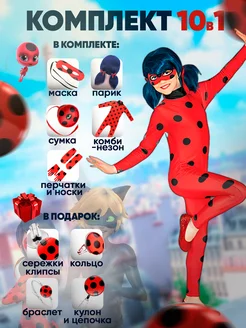 Костюм Леди Баг карнавальный с париком и маской новогодний