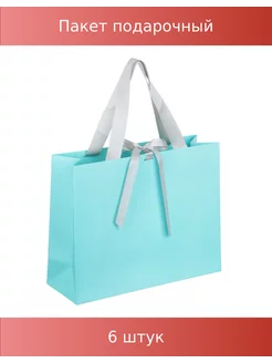 Пакет подарочный, с лентой, 32x25x11 см, тиффани, 6 шт