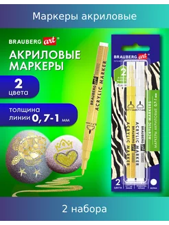 Маркеры акрил. 2 цв. ЗОЛОТО СЕРЕБРО, лин 0,7-1мм, 2 набора
