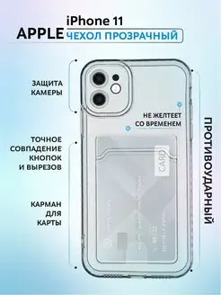 Чехол на iPhone 11 прозрачный, силиконовый, карман для карты