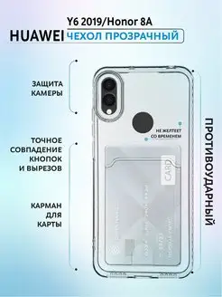 Чехол на Honor 8A, Huawei Y6 2019 прозрачный силиконовый