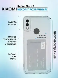 Чехол на Redmi Note 7 прозрачный силиконовый с карманом