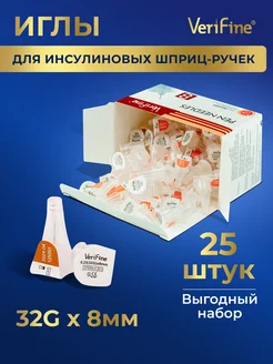 Иглы для шприц ручки инсулин 32Gх8 мм 25шт