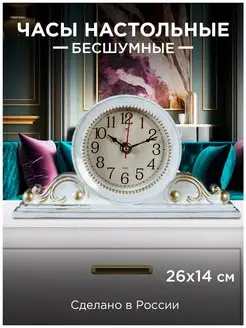 Часы настольные кварцевые бесшумные, 26х14см бел.зол