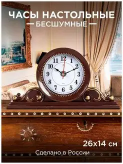 Часы настольные кварцевые бесшумные, 26х14см кор.зол