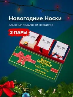 Новогодние носки с принтом набор 3 пары в подарок