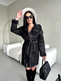 Шуба искусственная экошуба под норку без капюшона с поясом