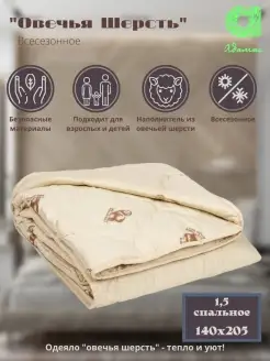Одеяло "Овечья шерсть" 1.5 сп, всесезонное 140*205