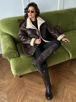 Дубленка авиатор короткая оверсайз зимняя пилот