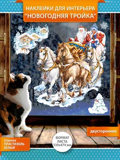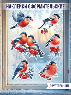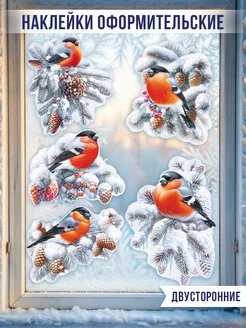 Новогодние наклейки на окна двусторонние многоразовые 2026