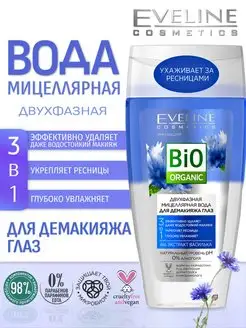 Вода мицеллярная двухфазная для демакияжа глаз 3в1, 150 мл